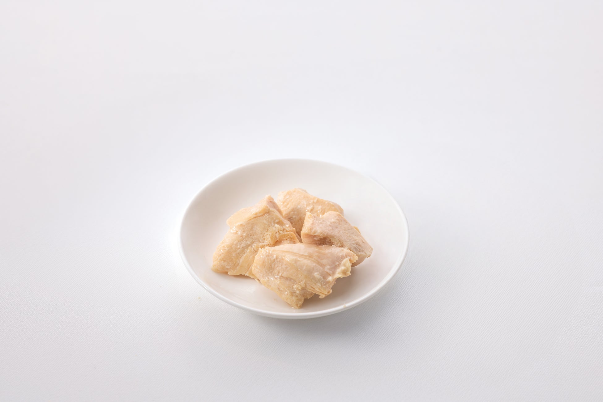 ほどよく焦がした九州産若鶏の、芳ばしいお肉の香りが食欲を刺激します。(部位は皮を取り除いたムネ肉を使用しています。)