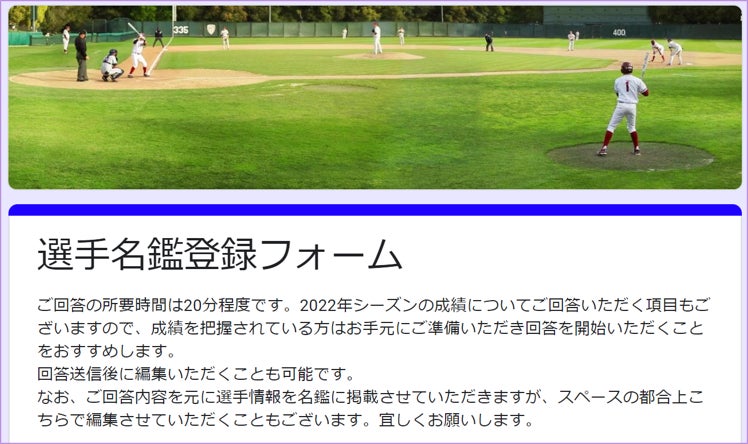 ※代理での回答もOKです。1つのGoogleアカウントで複数選手分の回答も可能です。