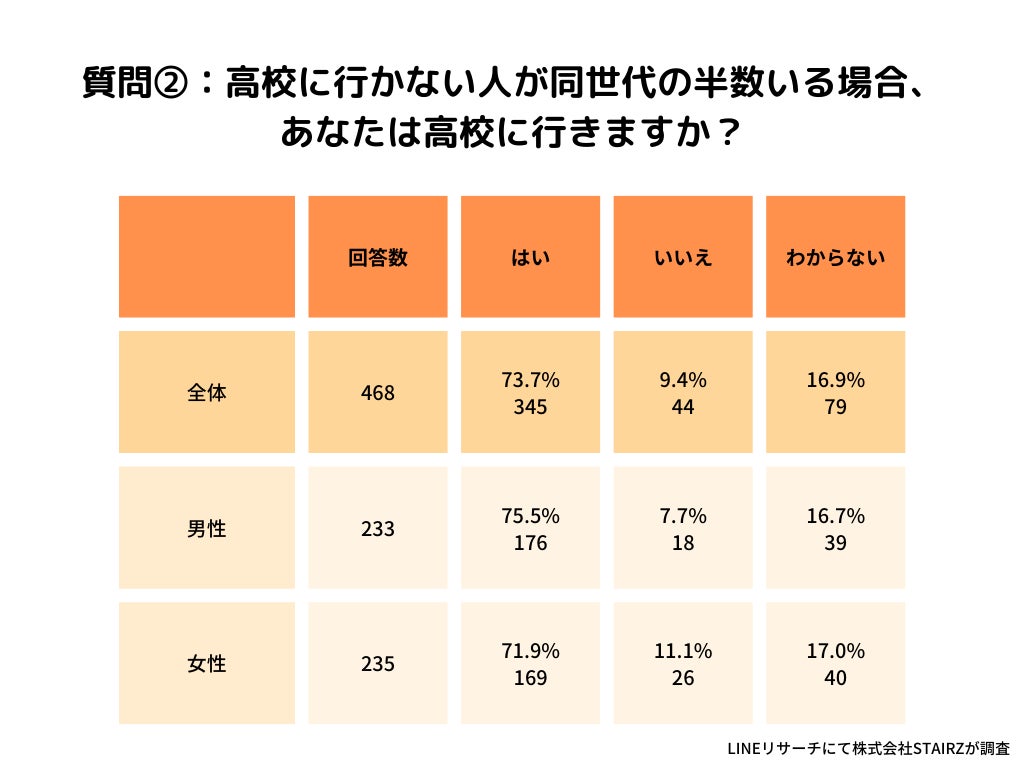 【質問②:高校に行かない人が同世代の半数いる場合、あなたは高校に行きますか?】