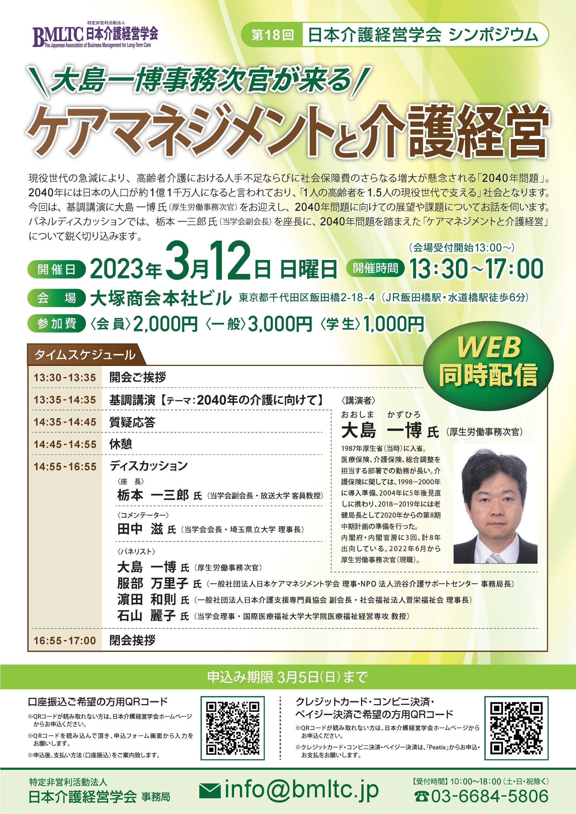 大島厚生労働事務次官登壇!「ケアマネジメントと介護経営」第18回シンポジウム開催のお知らせ