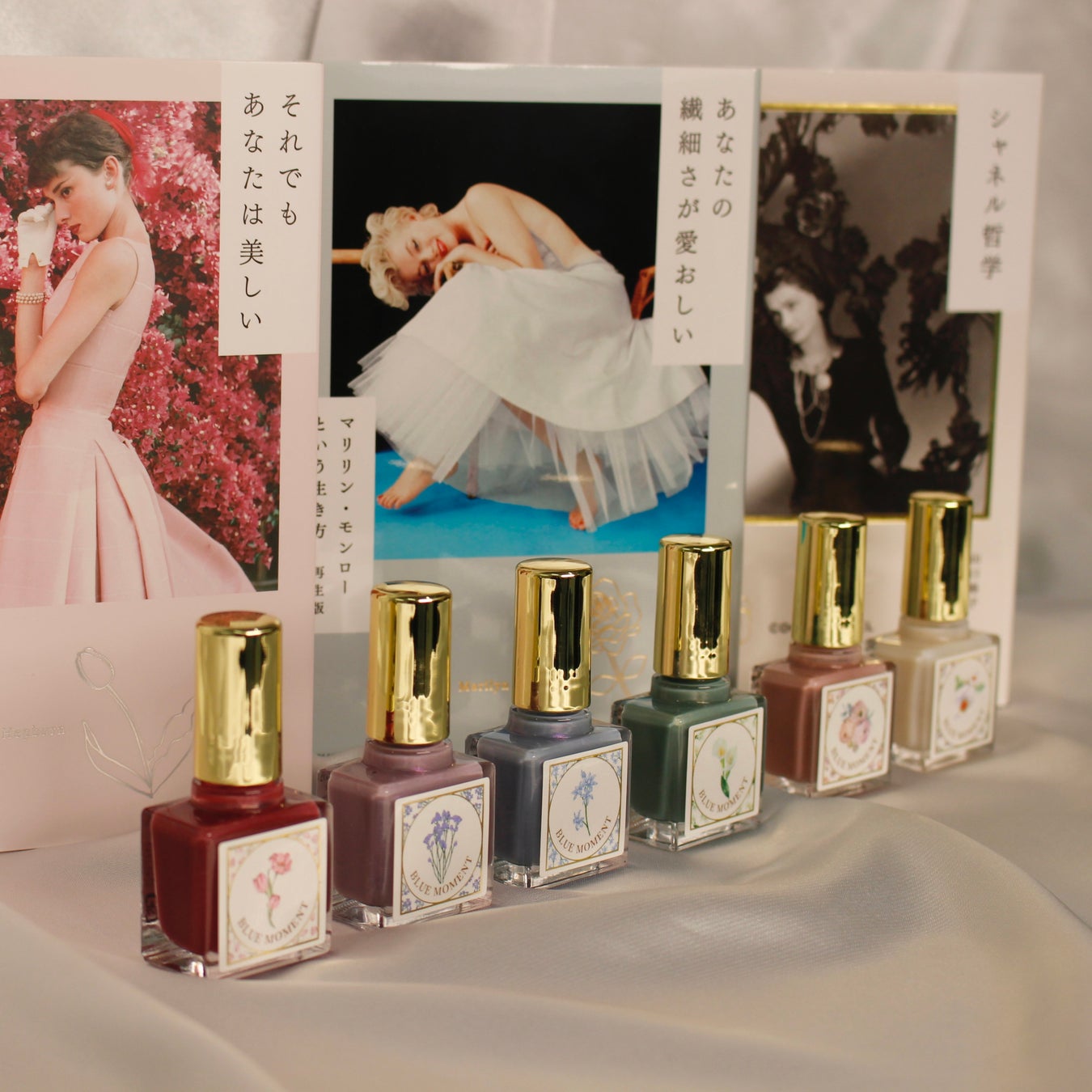オードリー・ヘップバーン、マリリン・モンロー、ココ・シャネル…。それぞれのネイルポリッシュの色彩やネーミングは、時代のアイコンとなった女性の生き方を象徴する花言葉をもつ、美しい花からインスパイアされたものです。