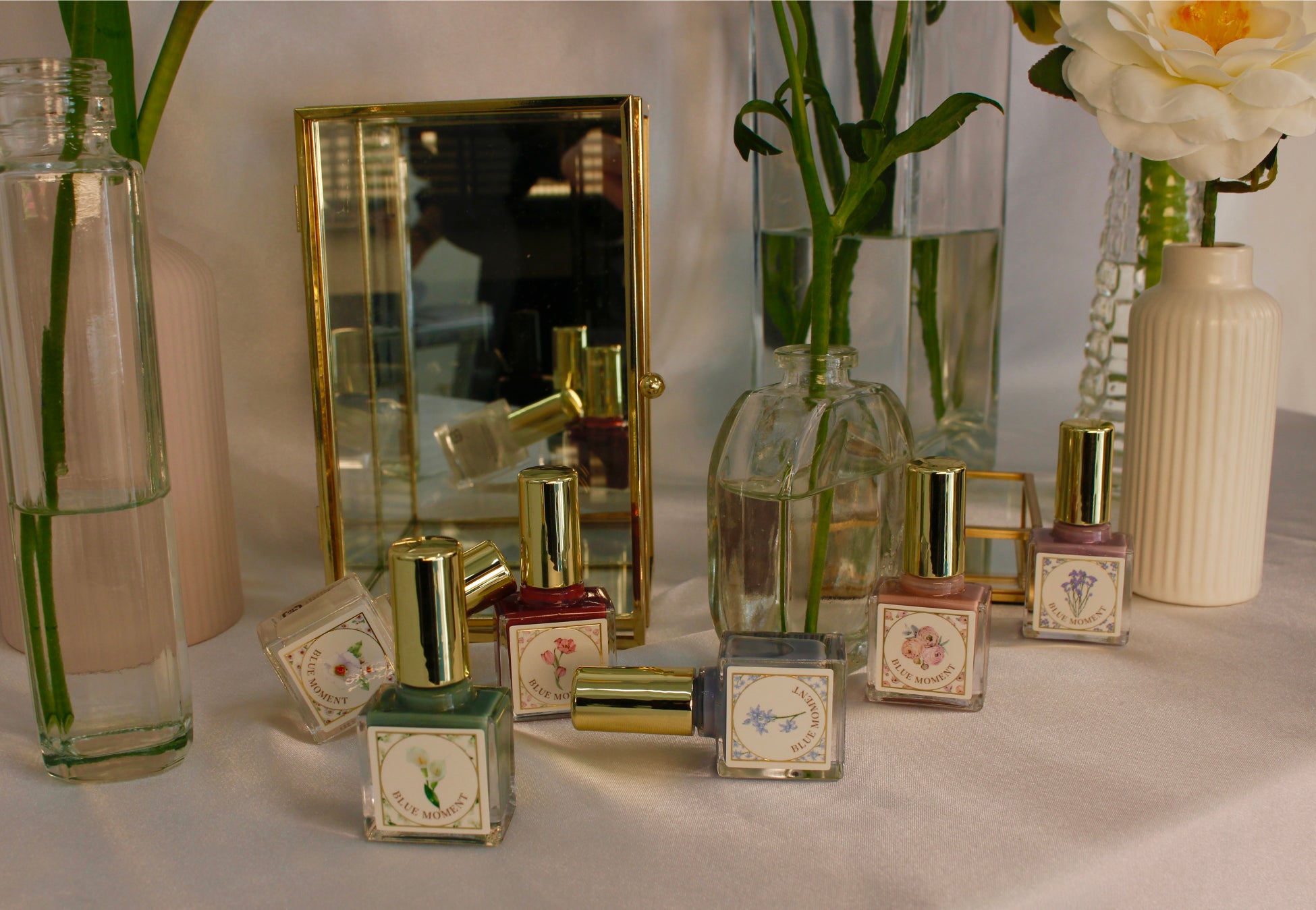 少しでも自分を好きになれたり、嬉しい変化が起こるような、そんなネイルポリッシュをつくりたい、届けたいと思いました。ポリッシュの物語、カラー、質感、繊細なラメやパール、ボトルのデザイン。すべてにこだわりをギュッとつめた作品です。