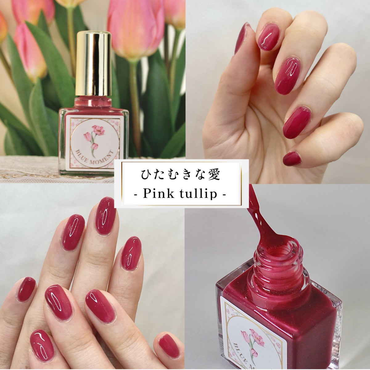 あざやかなピンクのチューリップの花びらからインスピレーションを得た、ブライト・ピンク。重ね塗りをすると深みが増して、やわらかだけど芯の強い「ひたむきな愛」があらわれます。