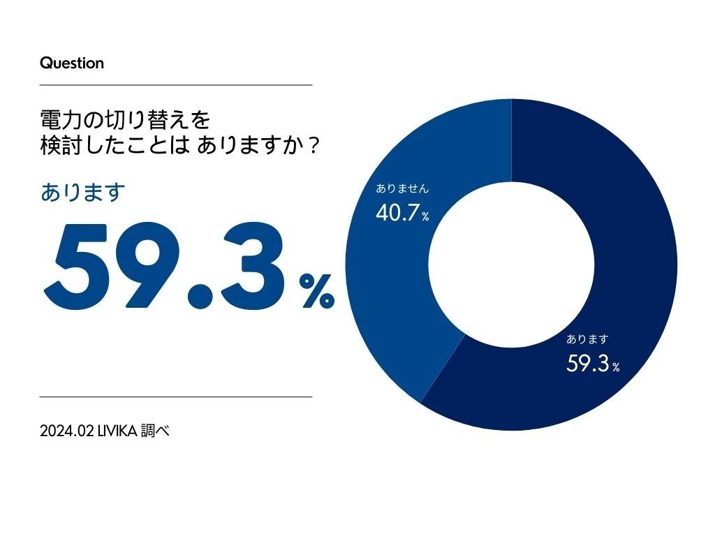 電力会社の切り替えの有無について、59.3%の方が「電力会社の切り替えを検討したことがある」と回答しています。