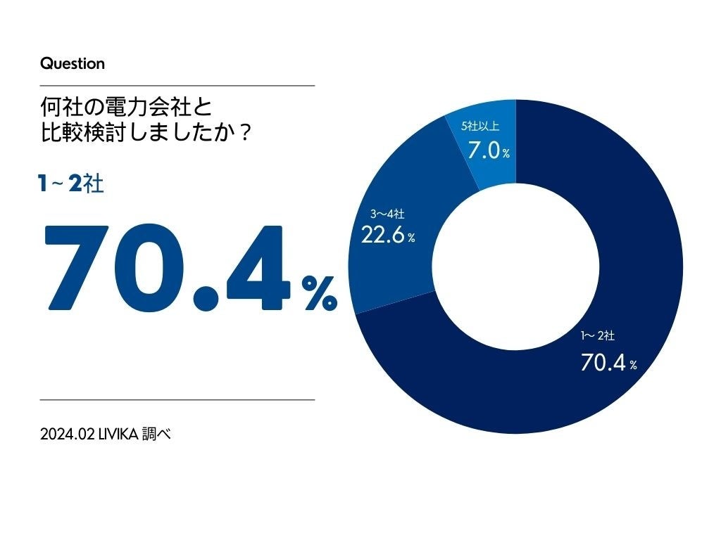 また、切り替え先の電力会社を比較検討した数は、約7割の方が1~2社と回答しています。