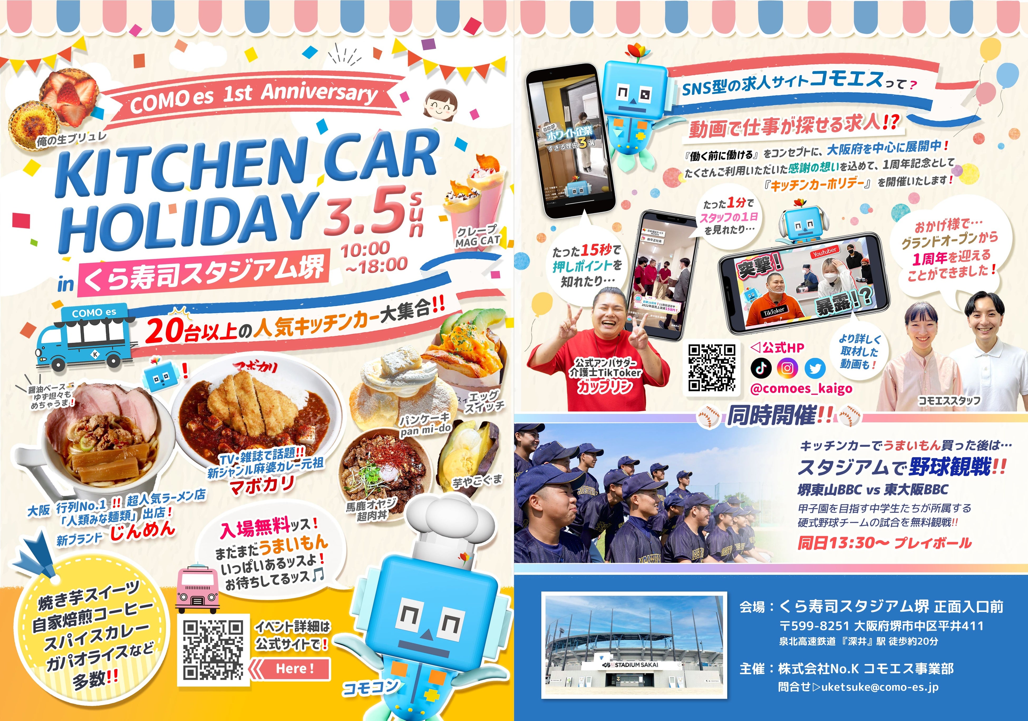 「コモエス1周年感謝祭 キッチンカーホリデー」を《くら寿司スタジアム堺》にて開催!20台以上のキッチンカーが大集結!