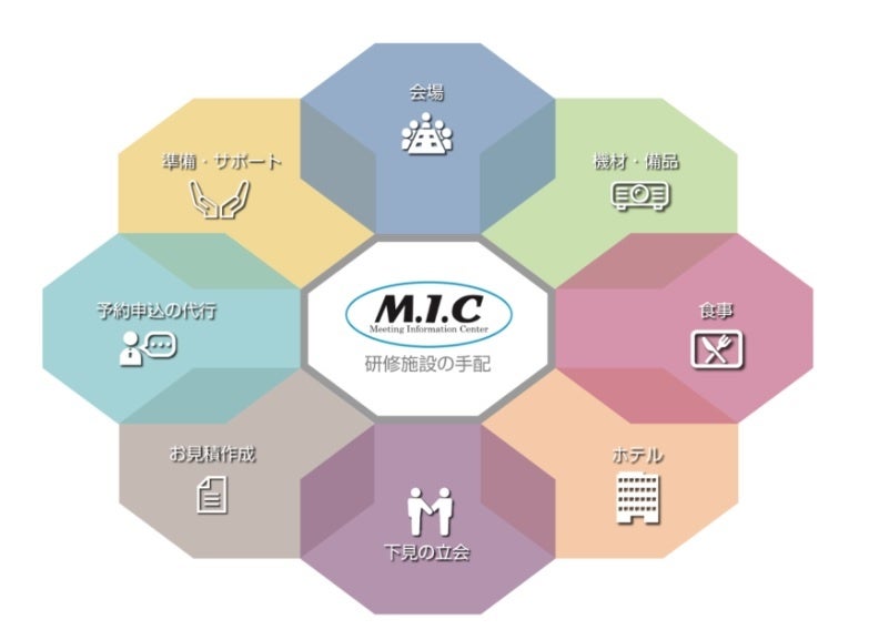 MICでは、研修をはじめ、会議、セミナー、入社式、会社説明会、株主総会、合宿などを予定する企業・団体に向けて、開催場所となる施設を手配するサービスを展開しております。
