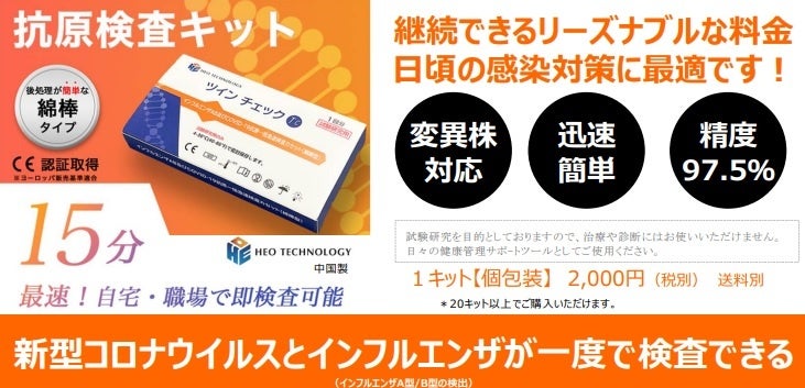 新型コロナウイルスとインフルエンザが一度で検査できる抗原検査キットを研修前に職場に手配する事も可能です。リーズナブルな料金で、検査時間わずか15分と、簡単な検査で日頃の感染対策に取り入れることができる補助キットです。