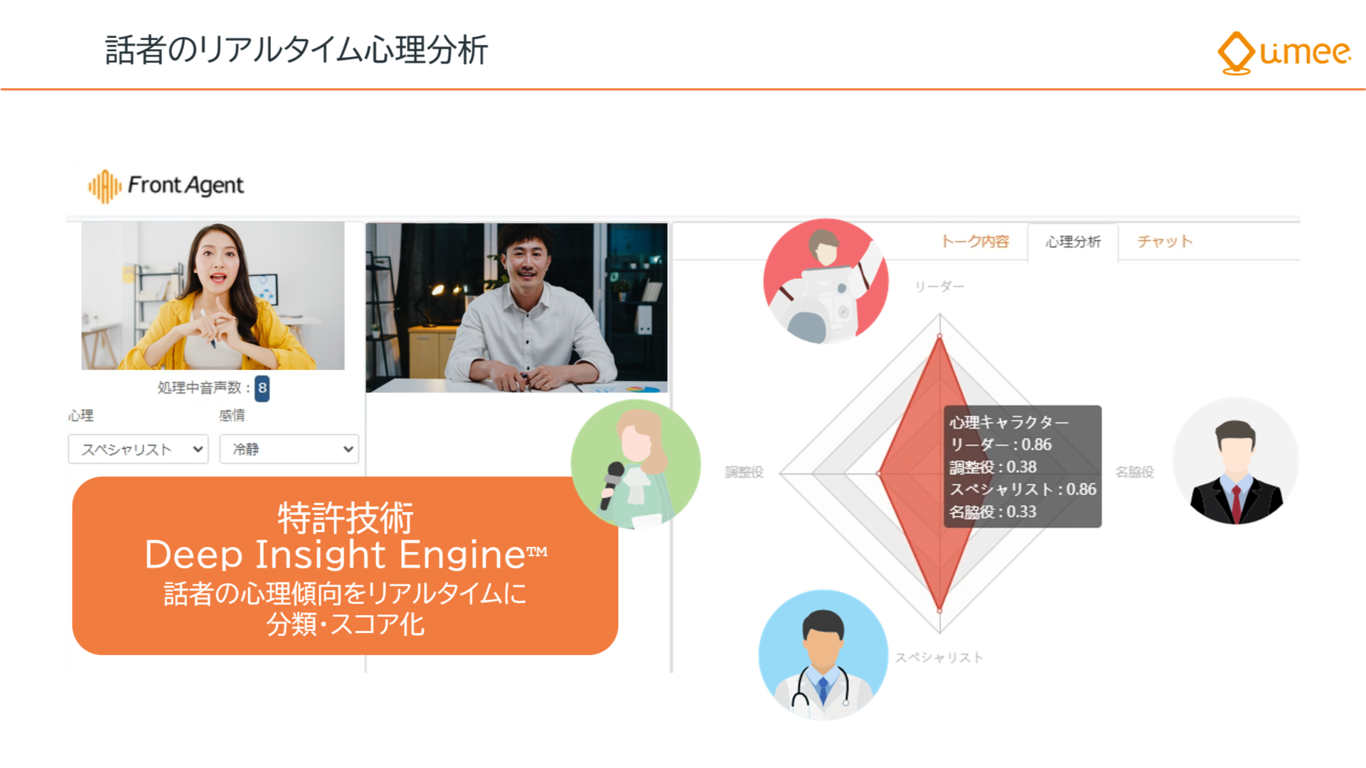 <AI商談アシストプラットフォーム「Front Agent®」のリアルタイム心理分析機能>