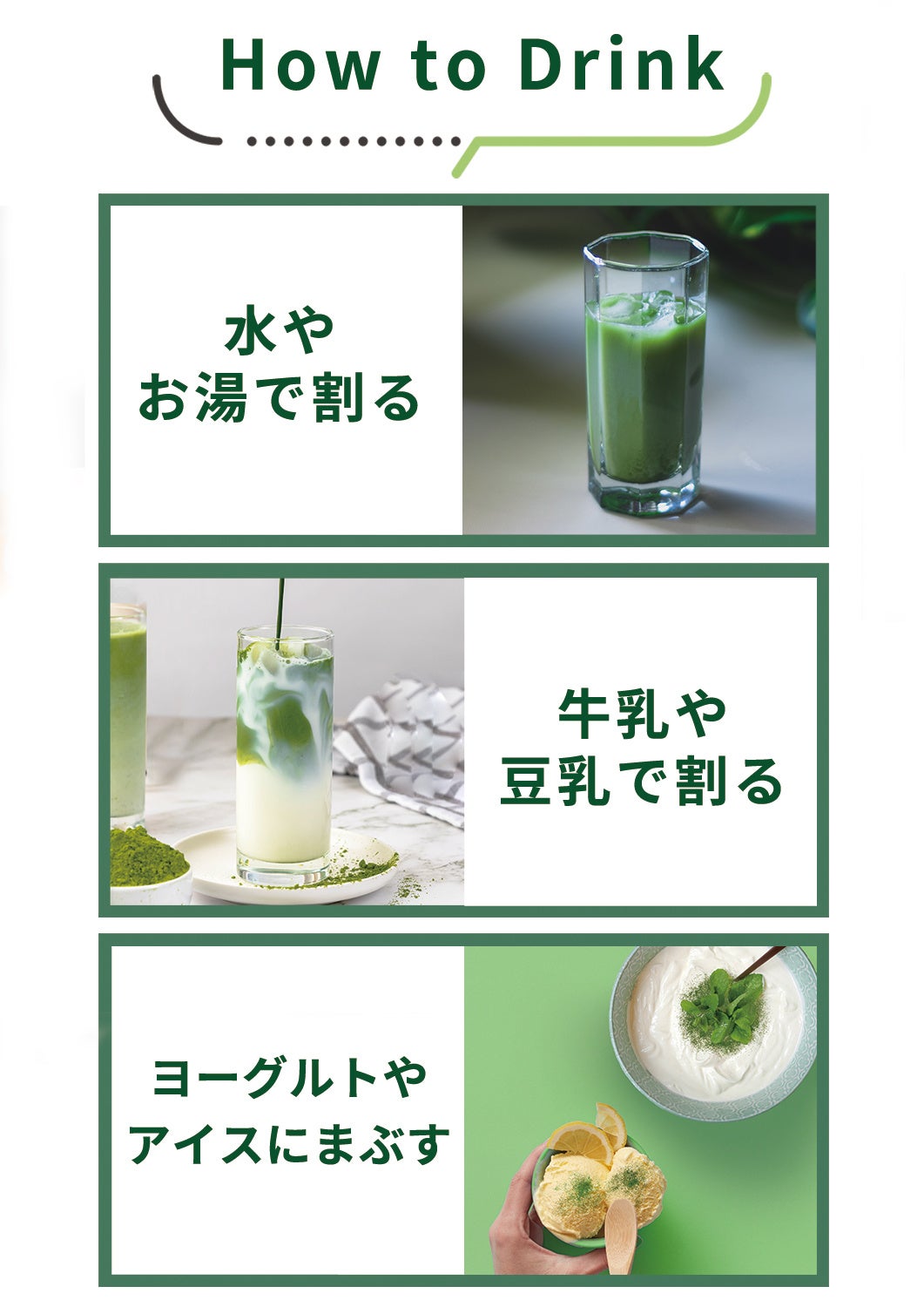 1日1包を目安に150mlの水または牛乳などに溶かしてお召し上がりください。