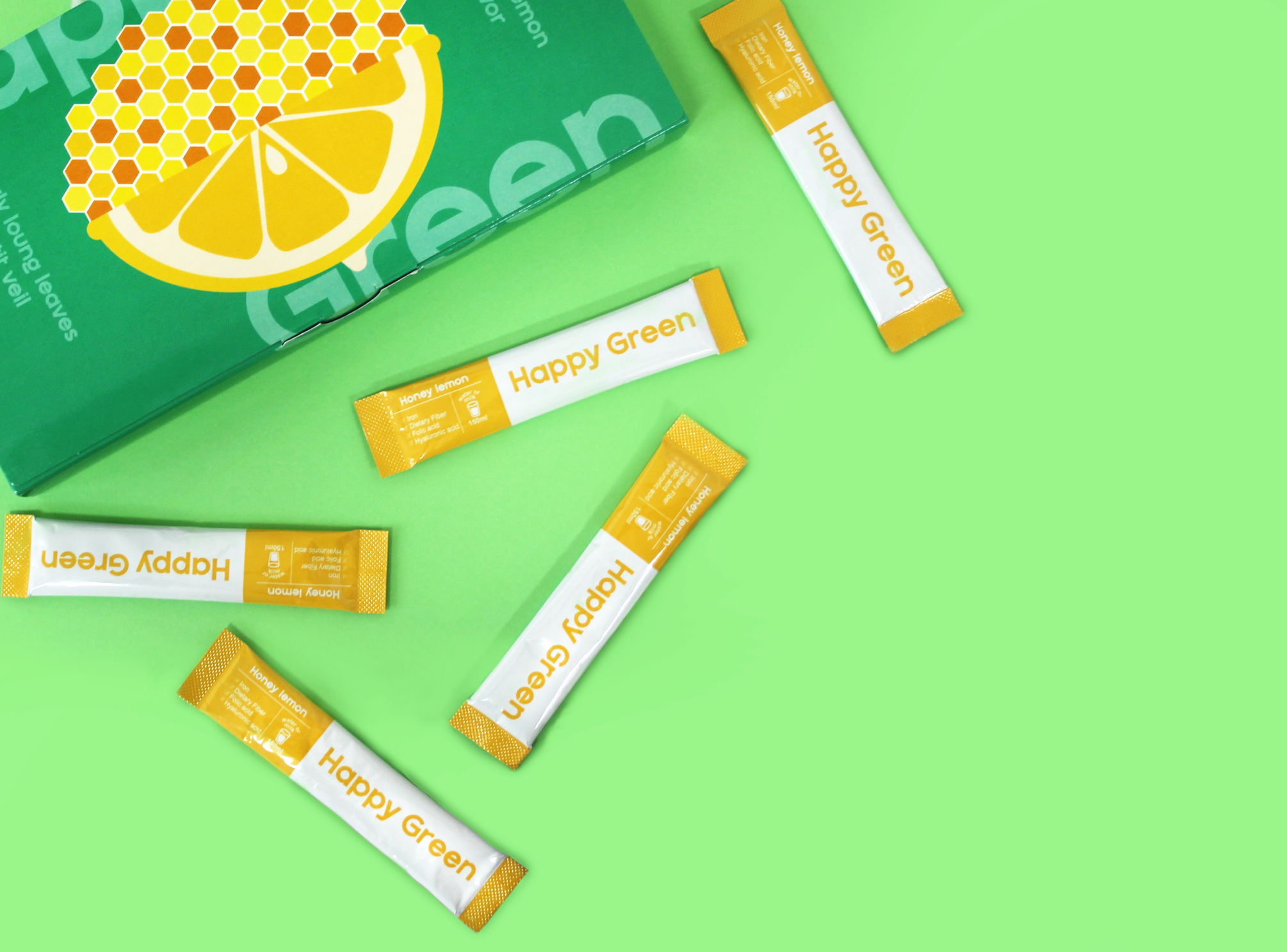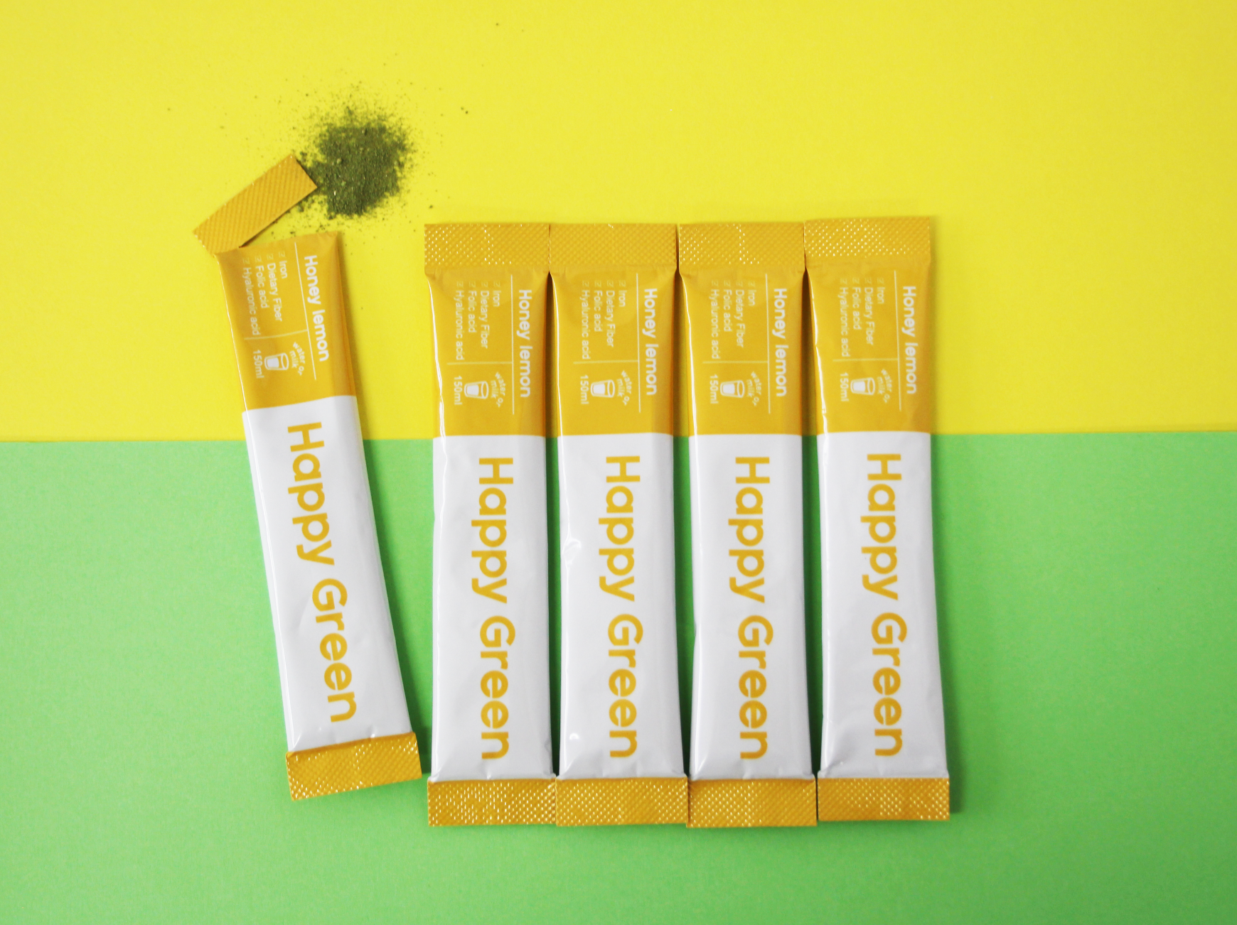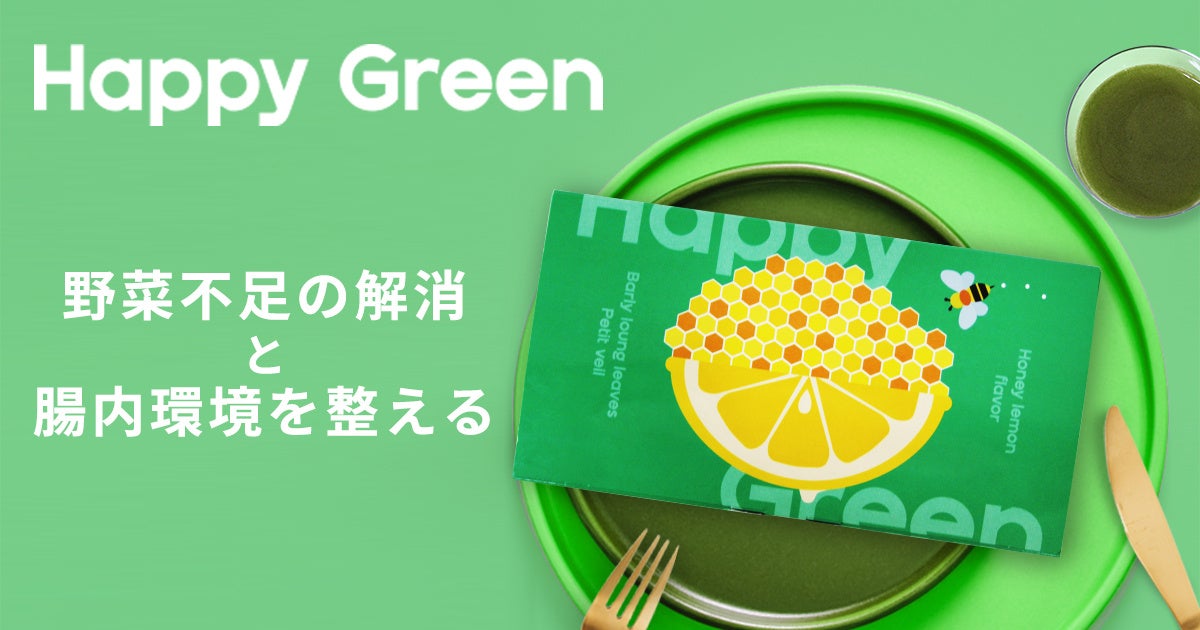 野菜不足の解消と腸内環境を整えるフルーツ青汁、HAPPY GREEN ハニーレモン フレーバー