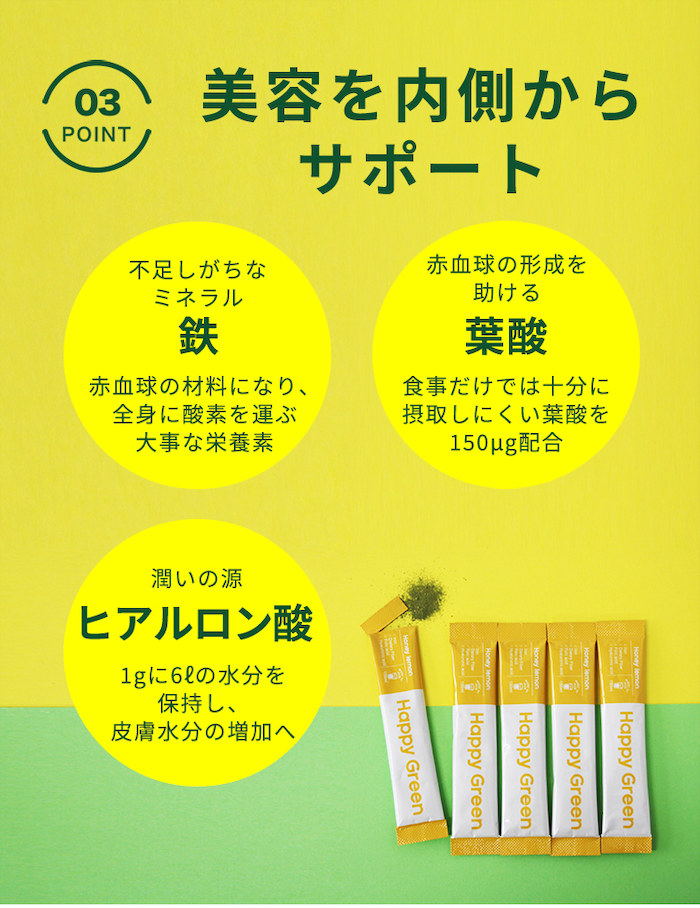 4)女性に嬉しい美容をサポートする鉄とヒアルロン酸を配合