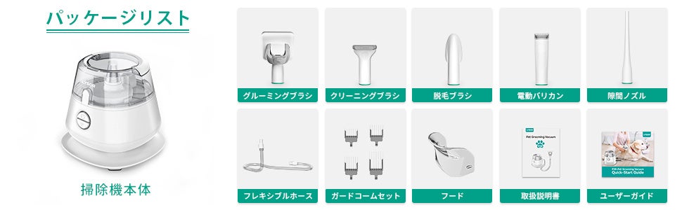 - 【1台5役・アタッチメント充実】 5つの付属パーツが付き、1台で「ブラッシング」「トリミング」「抜け毛除去」「ペット抜け毛を吸い込む」のができるグルーミングセットです。バリカンと掃除機が一体に、トリミングするときは、ペット用バリカンには6mm・12mm・18mm・24mmの4種のガイドコームが付き、短毛の猫でも、長毛の犬でも対応可能で、毛は舞ったり、散ったりのストレスがありません。