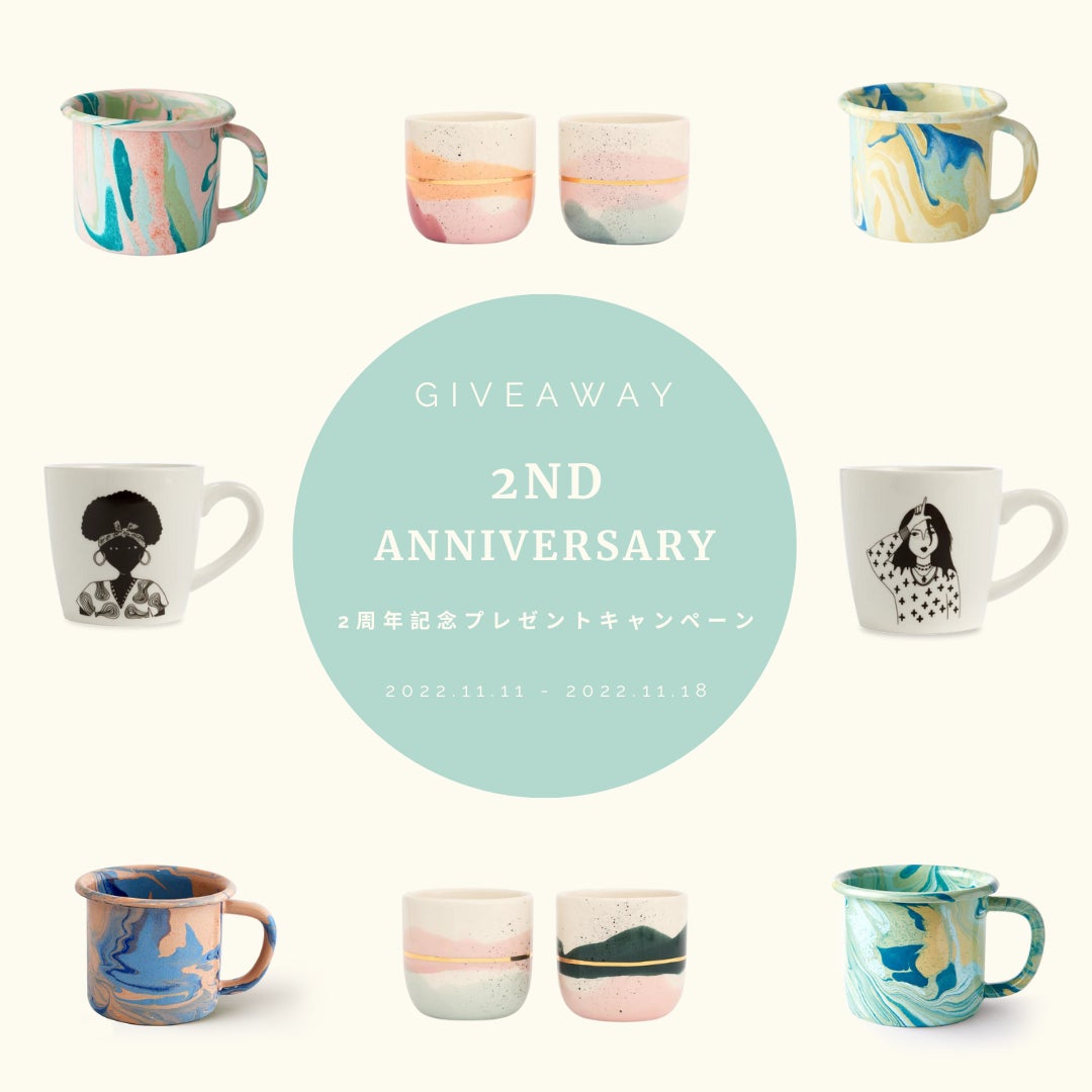 オープン2周年記念のプレゼントキャンペーンを11月11日より実施!海外インテリアブランドのマグカップとお茶のセットを20名様に