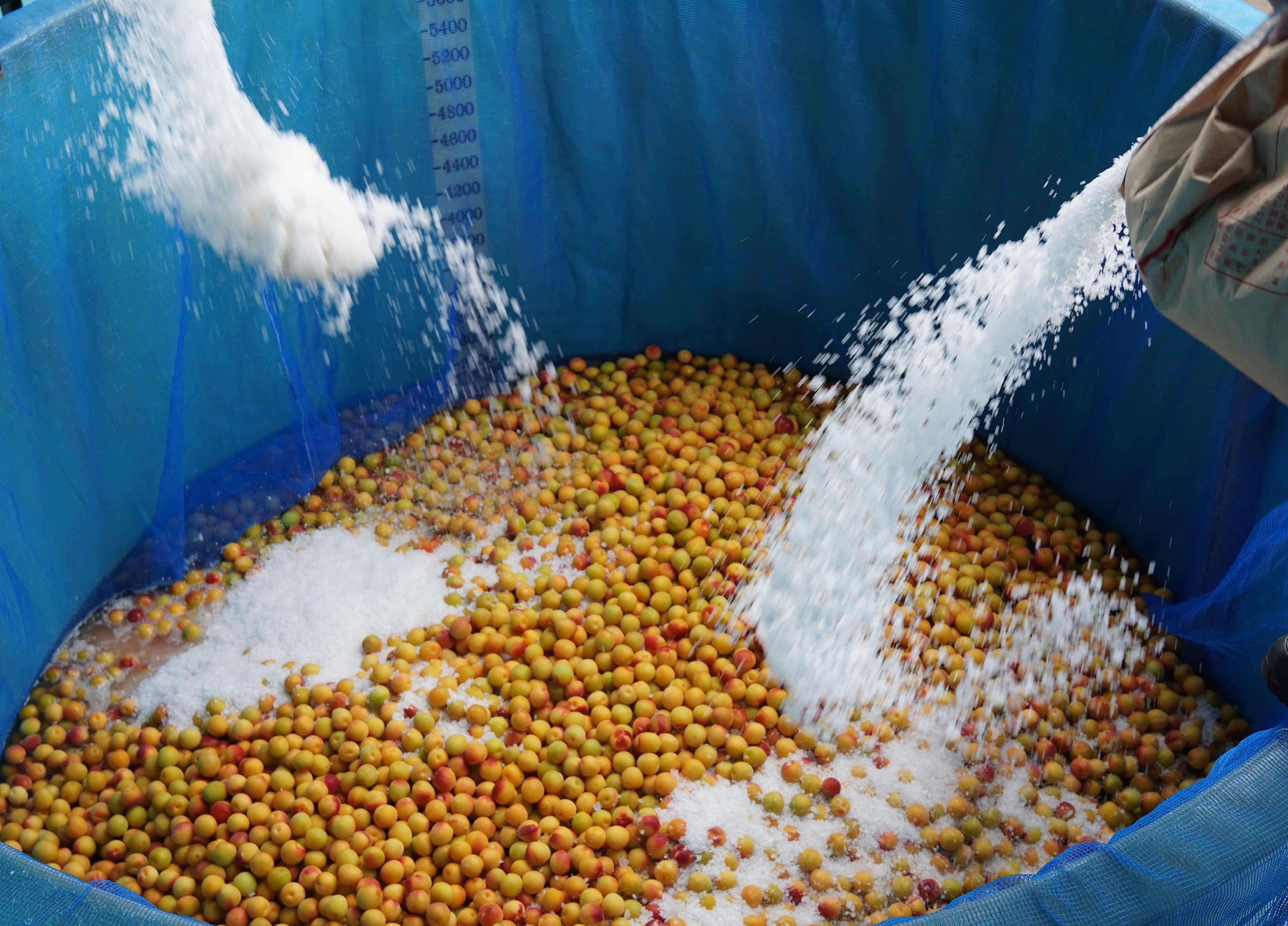 その負担を軽減するために当社も15年前から自社工場にて原料梅を調達し、漬け込み作業の一端を担う取り組みも行っています。