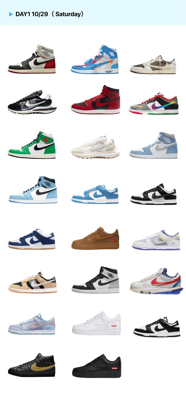 2022年10月29日(土)・2022年10月30日(日)の二日間で、人気スニーカー合計100足の定価販売を実施。