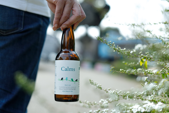 「Calms」と「Re & Re」、2本のCBDビールが並ぶことで、シュチュエーションや気分で飲み分けて親しんでいただけます。