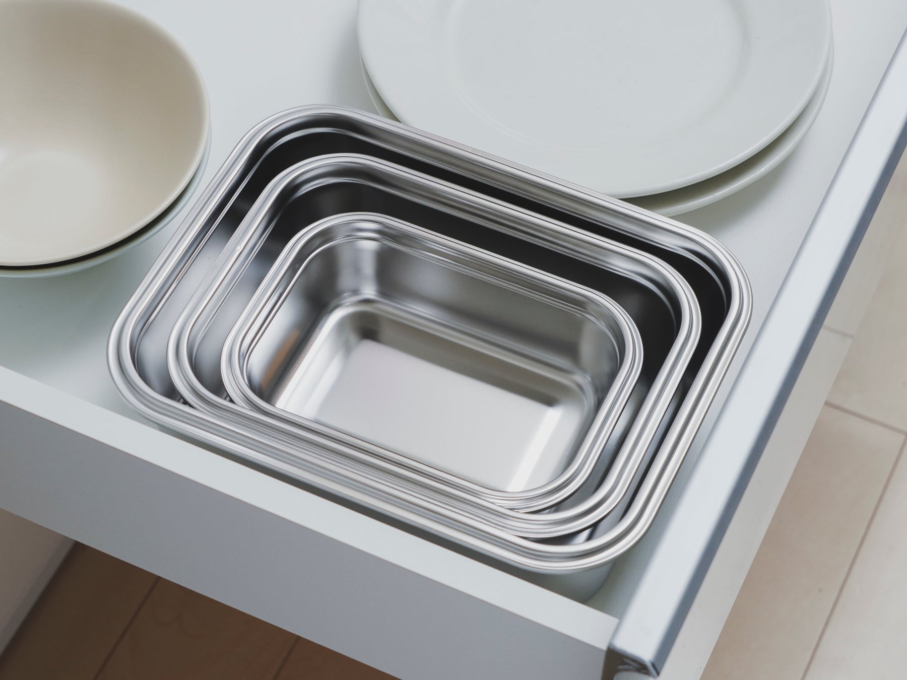 高品質ステンレスを使用することで、保存も調理もできるステンレス調理保存容器として開発されました。電子レンジ以外にも、オーブンや冷凍庫、食洗機での使用も可能です!