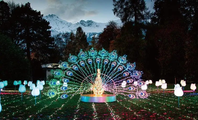 例えばMKイルミネーションが本社を構えるオーストリアでは、アルプス山脈のふもとの観光保護公園の自然を活かして10ヘクタール(東京ドーム約2個分)のイルミネーションモチーフを設置しています。インスブルック地方の森林に生息する動物たちを精巧な作りのモチーフで再現し、ナイトウォーキングしながら楽しめる空間になっています。