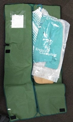 デラックスデリバリーバッグは、クリーニング品の持ち込み時と引き取り時の両方に使える新しい形のエコバッグです。クリーニング店への持ち込み時は通常のエコバッグとして、引き取り時にはスーツカバーのような形状になることが特徴で、洗浄前と洗浄後の衣類でバッグの接地面が異なるため非常に衛生的です。また、伝票入れのポケットがバッグの内側と外側の両面に付いているため、プライバシーが保護できるという観点から、クリーニング無人受渡機での活用も広がっています。