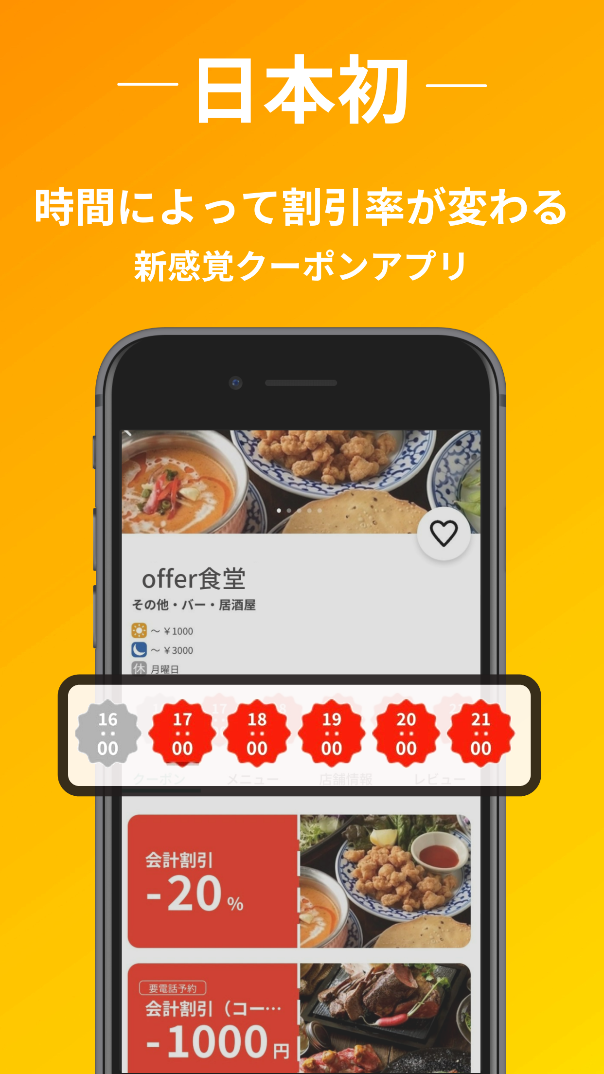 日本初、時間帯ごとにリアルタイムで飲食店の価格がお得に変動する新感覚グルメアプリ「オファー」