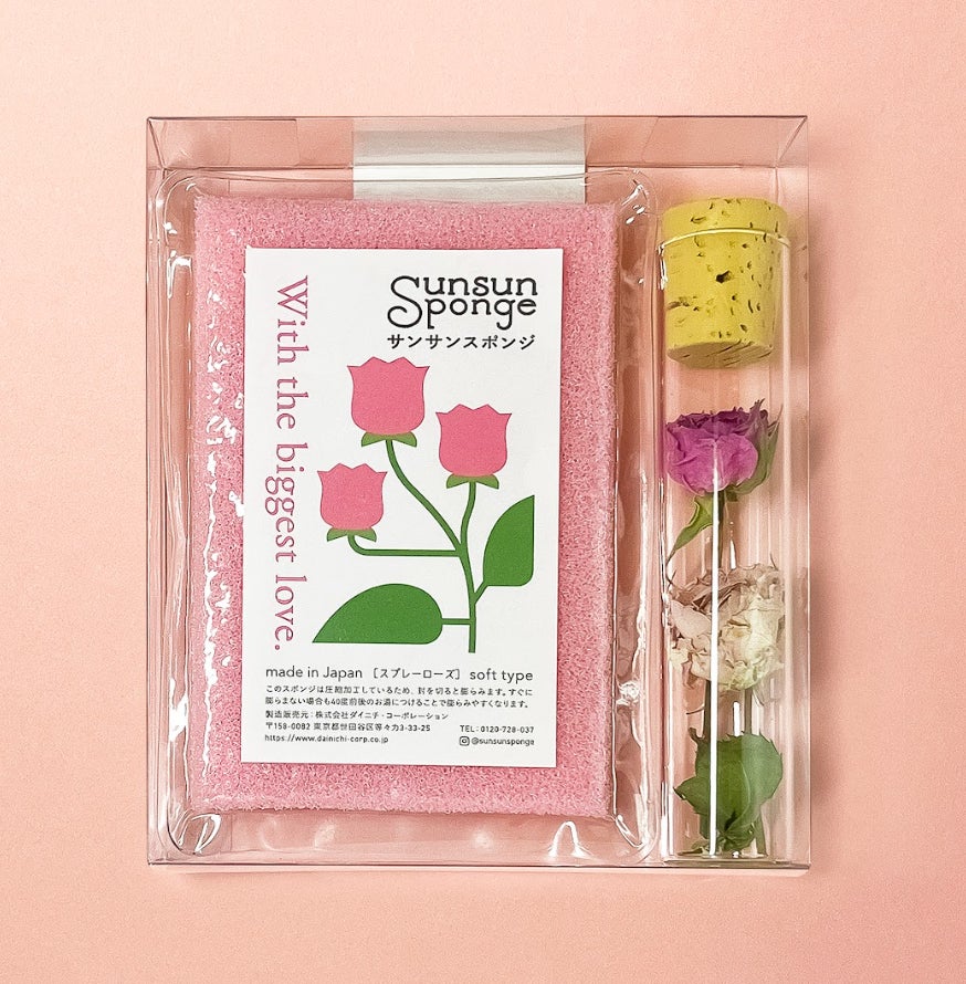 「サンサンスポンジ」が花に想いを込めてドライフラワー付きフラワーラベルスポンジのギフトセットを新発売