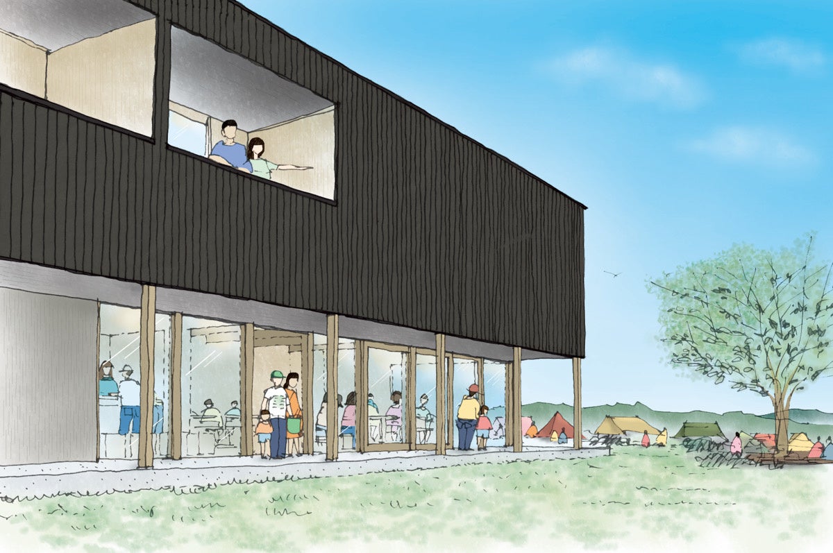 施設のコンセプトは「空と混ざり合う、わたしの時間。」青空を眺めながらゆっくり過ごす、星空のもと大切な人と美味しい地元の食材と飲み物を楽しむ、思い思いの時間を大きな空とともにお楽しみください。