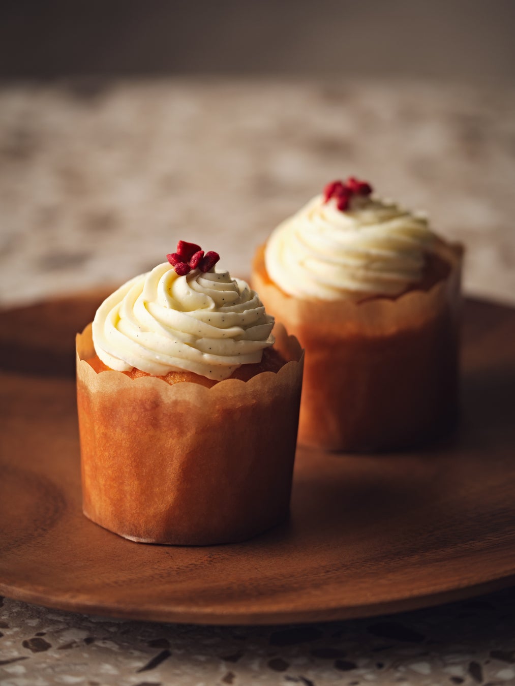 ●マフィン_バタークリームを飾ったしっとりした焼菓子。※600円/個