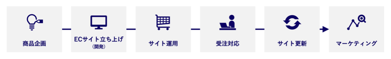 ECサイトの構築〜ECサイトスタート後も運用代行、物流、販売戦略立案まで全てワンストップでご提供いたします。