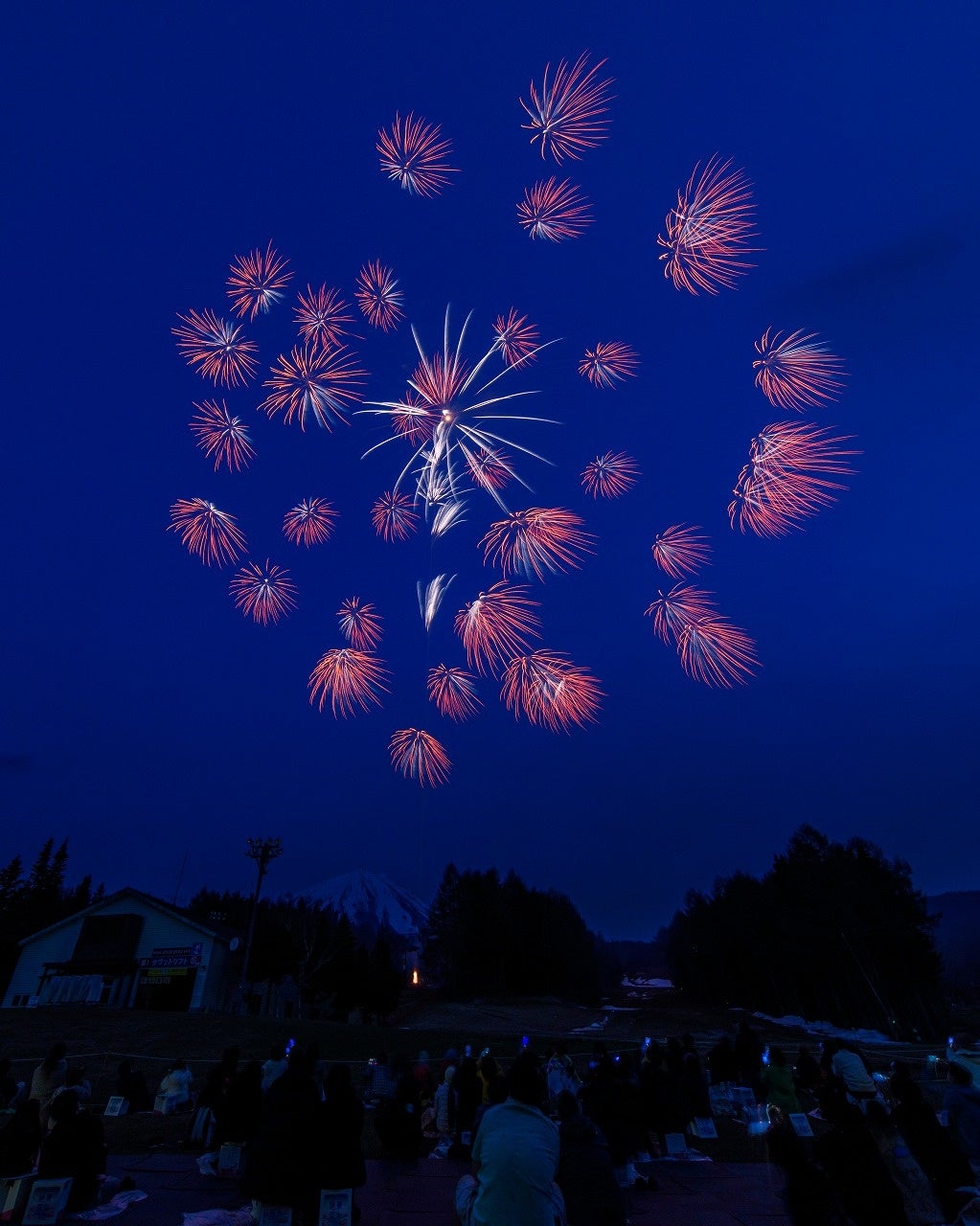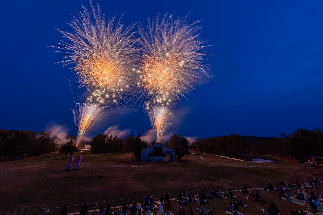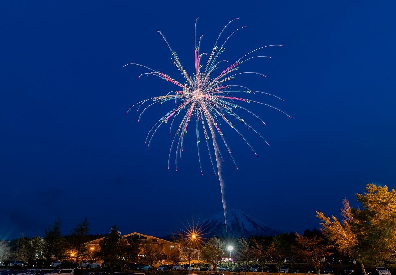 春の霊峰富士に約10,000発の大輪舞う 日時:2022年4月23日(土)18:30~ 会場:ふじてんリゾート(特設会場)