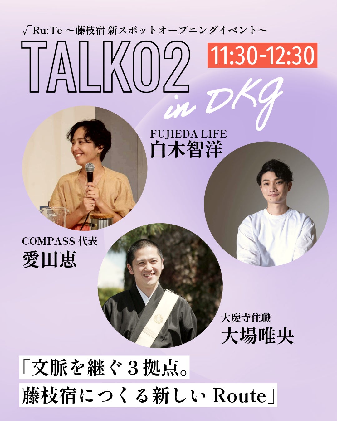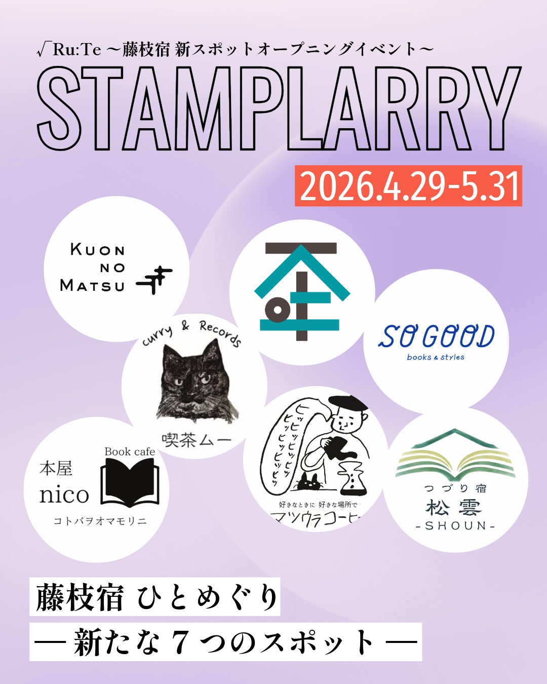 旧東海道・藤枝宿エリアに新たに誕生した拠点 「大慶寺貸別荘」「KITTOs・ほこほこベーグル」「つづり宿-shoun-」の合同オープニングとして、 藤枝宿の歴史・文化・現在の営みを“ひらかれた形”で体感できる一日限りのイベント“√Ru:Te(ルート)”を開催する。