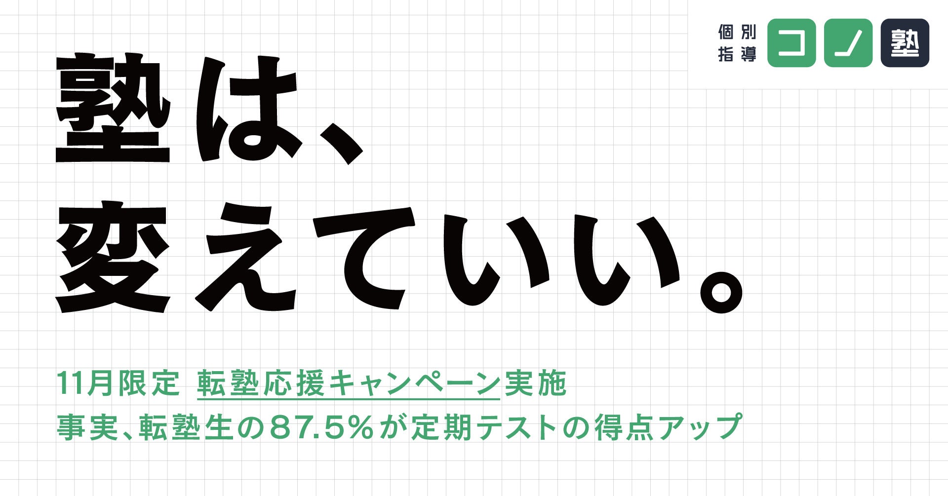 EdTechスタートアップ「コノセル」による個別指導塾「コノ塾」江古田・上石神井・多摩センター・富士見台での新教室オープンを記念して、転塾応援キャンペーン「塾は、変えていい。」を期間限定で開始