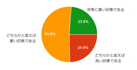 M&A仲介会社の営業姿勢に関する評価としては、ネガティブな印象を持っている人が75%超(「非常に悪い」「どちらかと言えば悪い」の合計)を占め、特に「非常に悪い印象をもっている」人も24%にものぼった。
