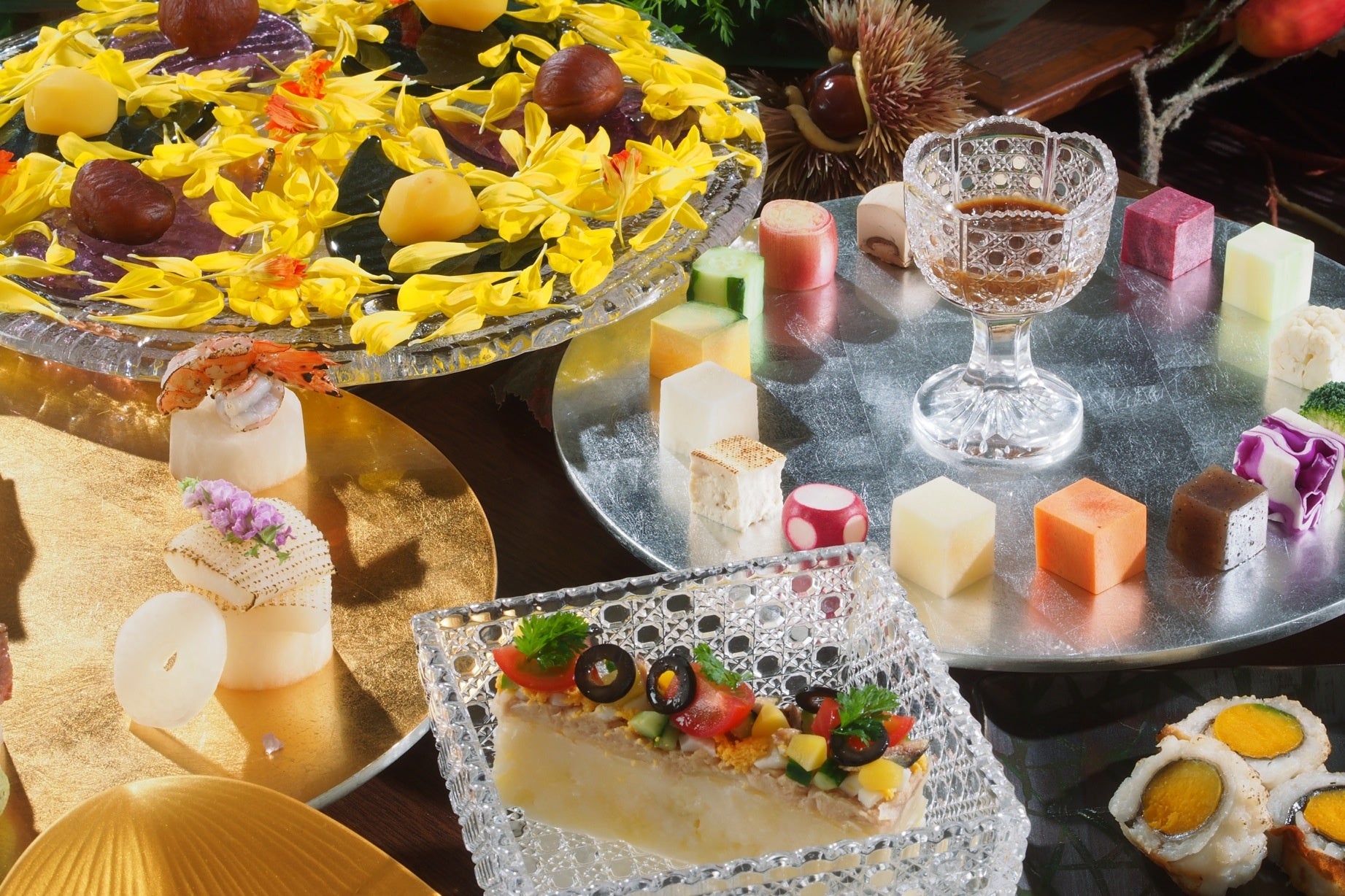 美味しい秋みぃつけた!秋の味覚をちりばめたスモールポーションの魅惑の一皿を自分好みにレイアウト♪自由に楽しんでいただける【懐石ブッフェ】秋企画のスタートです