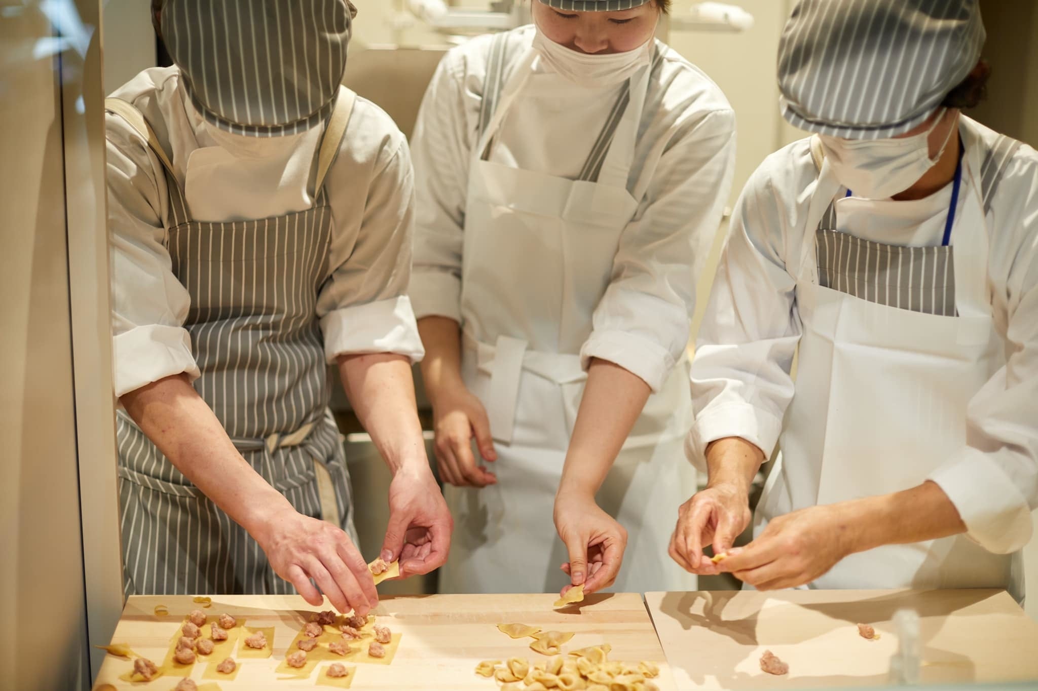 トルテッリーニは、そのフィーリングに熊本天草の放牧豚 パルマ産生ハム 、パルミジャーノチーズ 、木次の平飼い有精卵を主原料にしております。