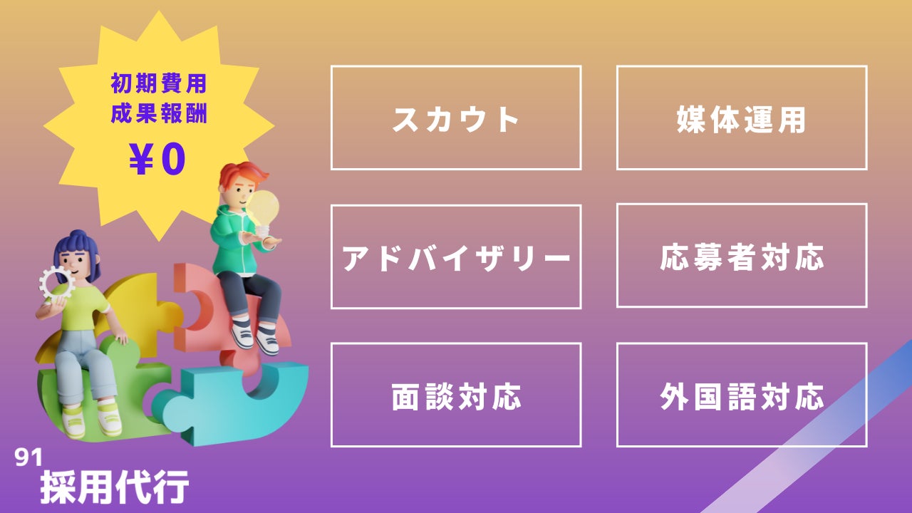 初期費用・成果報酬0円で様々な採用業務を代行します!