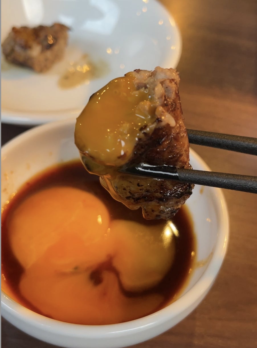 当店人気No.1メニュー!兵庫県明石市の郷土料理「明石焼き」をLMO風にアレンジした、当店オリジナルの「明石焼き」です。脂が乗ったプリプリのホルモンを、香り高い特製の合わせ出汁にくぐらせてお召し上がりください!そしてホルモンの脂の旨みが溶け込んだ出汁は、お肉との相性も抜群!是非お肉もつけてお楽しみください。最後はこの出汁をご飯にかけて!〆にも使える万能出汁を是非味わってみてください。