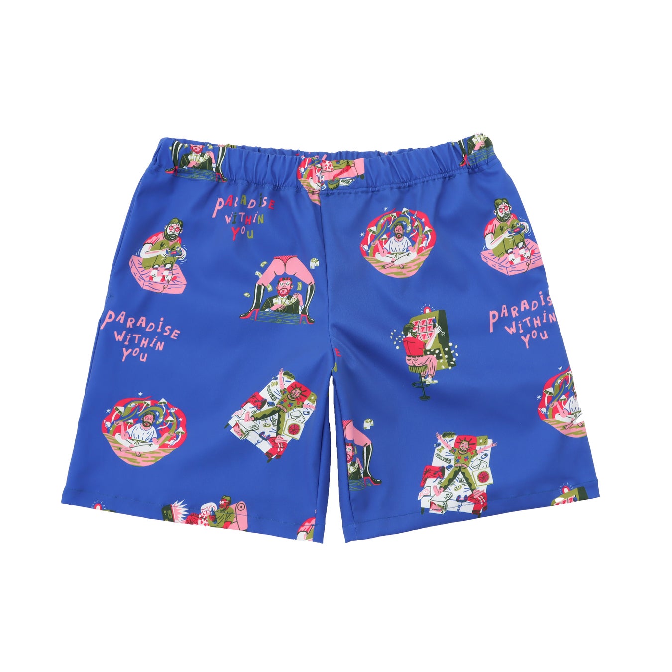 昨年より販売を開始したアロハ柄を使用したショートパンツの新作も販売を開始しました。シャツとは色味などの違いはありますが、吸汗速乾素材のポリエステル生地のため、街着としてはもちろん、キャンプや釣りなどのアウトドア、海、川、プールなどの水場でもガシガシ履くことのできる1着です。PITAYA(black),PITAYA(light blue),PARADISE,麻雀の4種類で展開。こちらは在庫販売のみとなります。