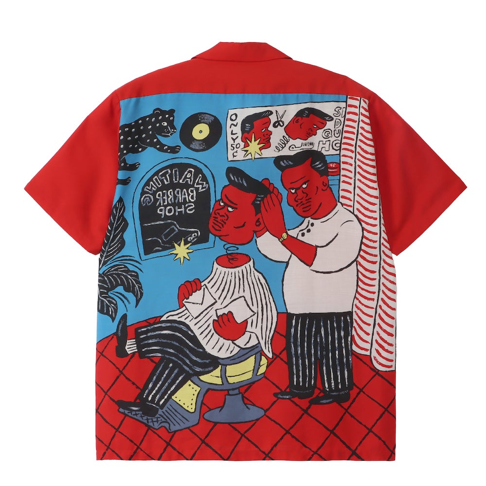 「Barber」をテーマに、恋人からの便りを手に"首を長くして待つ男性"とバーバー店主の1枚絵を背面にプリントしたアロハシャツ。アートワークはこれまでWorldMusicやENGEIのデザインを担当したRuminz氏。2020年に販売し、これまでに最も問い合わせの多かったバックパネルアロハシリーズ第1弾が満を持して再登場。