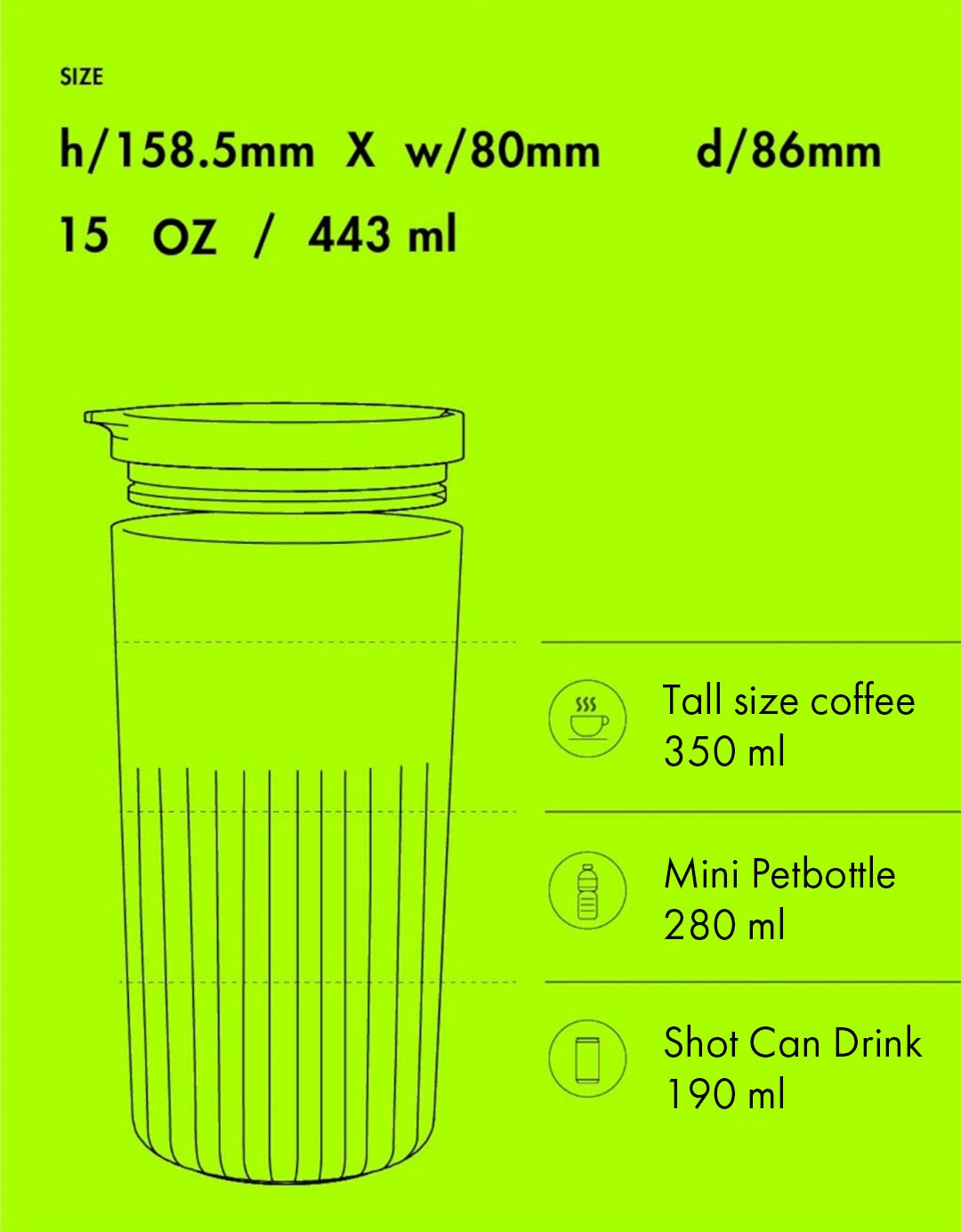 スタバなどの一部のコーヒーショップでは、マイタンブラーを持参すると割引サービスが受けられます。『REET CUP』は各コーヒーショップのTall(M)サイズもしっかり入る443ml(15オンス)の大容量。
