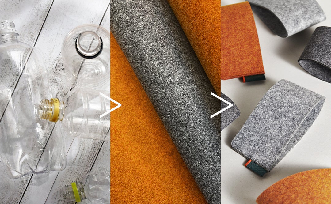 持ち手のスリーブも、ゴミとして廃棄されたペットボトルからアップサイクルした、再生ポリエステル「rFelt」のフェルト生地を使用しています。