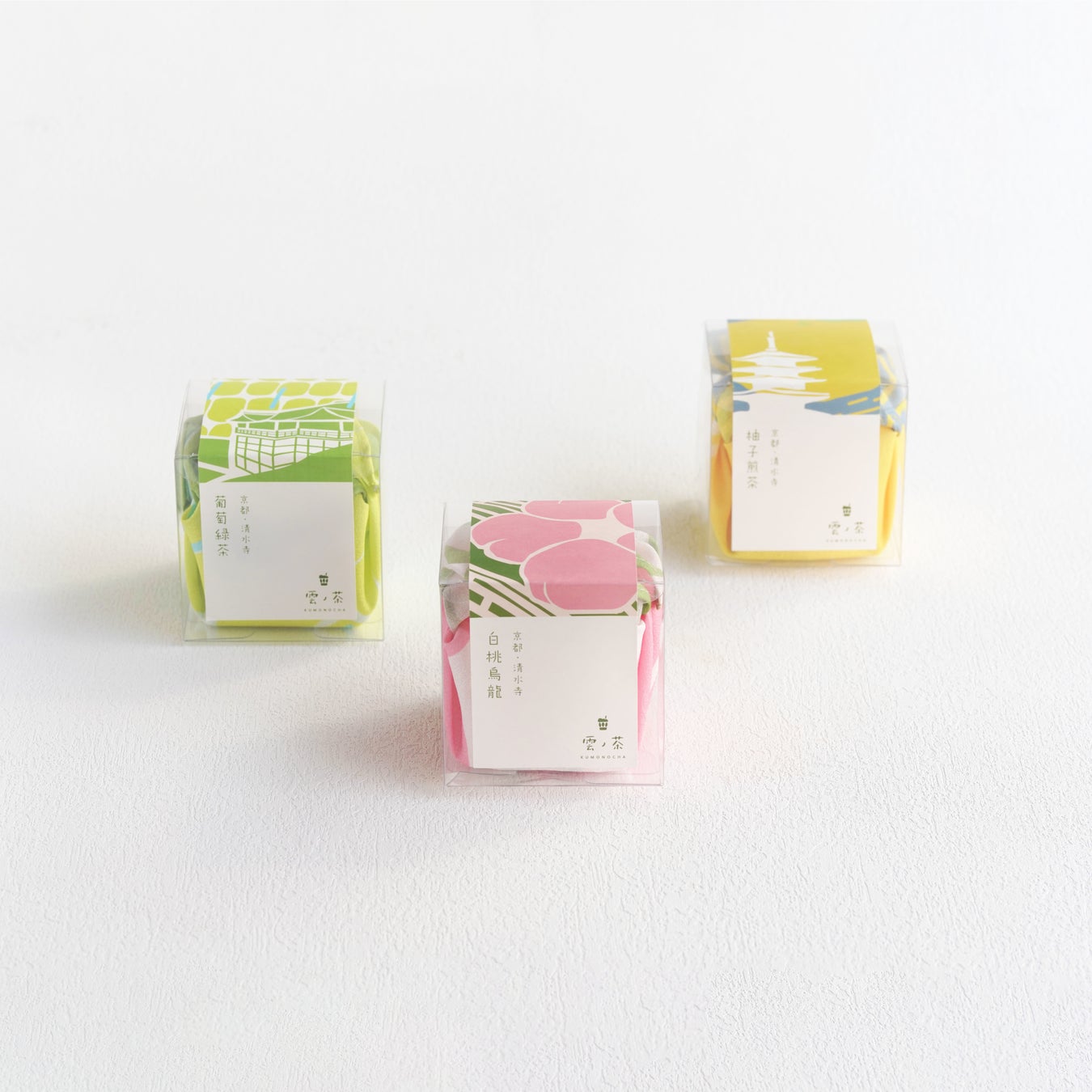 清水三年坂より雲ノ茶KUMONOCHA店内に足を踏み入れると目に入るお土産コーナーでは、下記3種類のお茶を揃えております。
