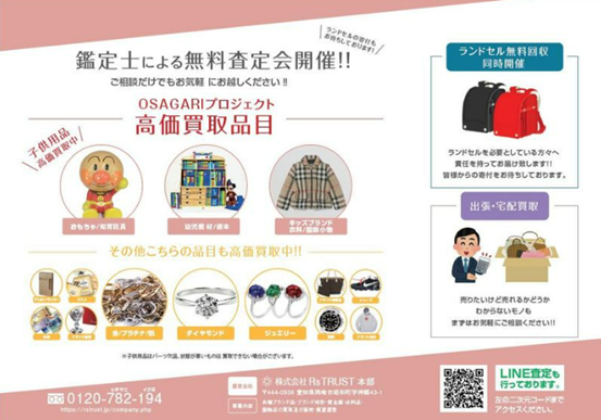 ランドセル、その他のご商品でも出張・宅配買取、回収、LINE査定なども行っておりますので、お気軽にご相談ください。