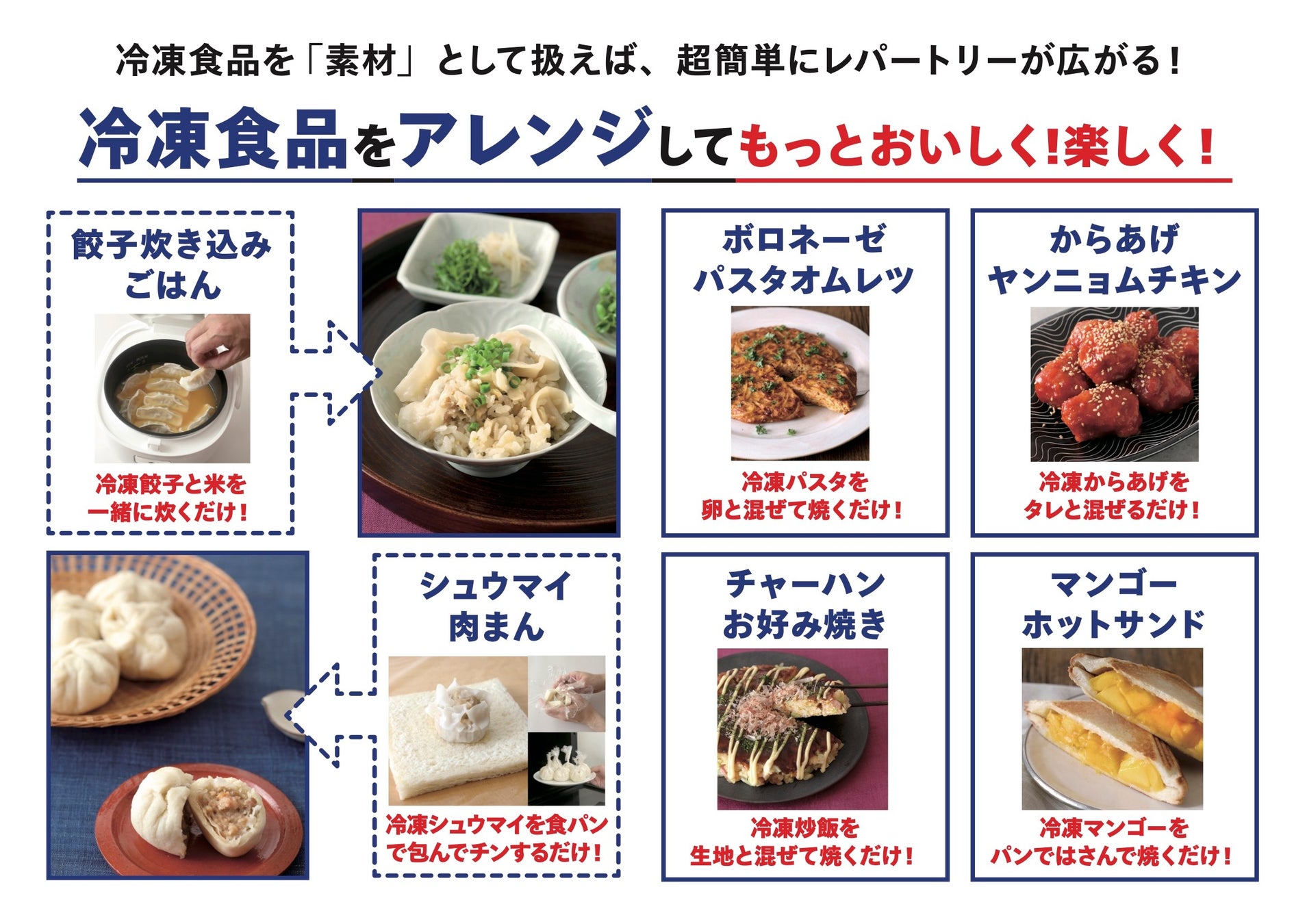 みんな大好き、THE・王道の冷凍食品――餃子、炒飯、お好み焼き、焼きおにぎり、鍋焼きうどん、パスタ。それぞれの美味しさの秘密を各メーカーに取材し、徹底解剖!