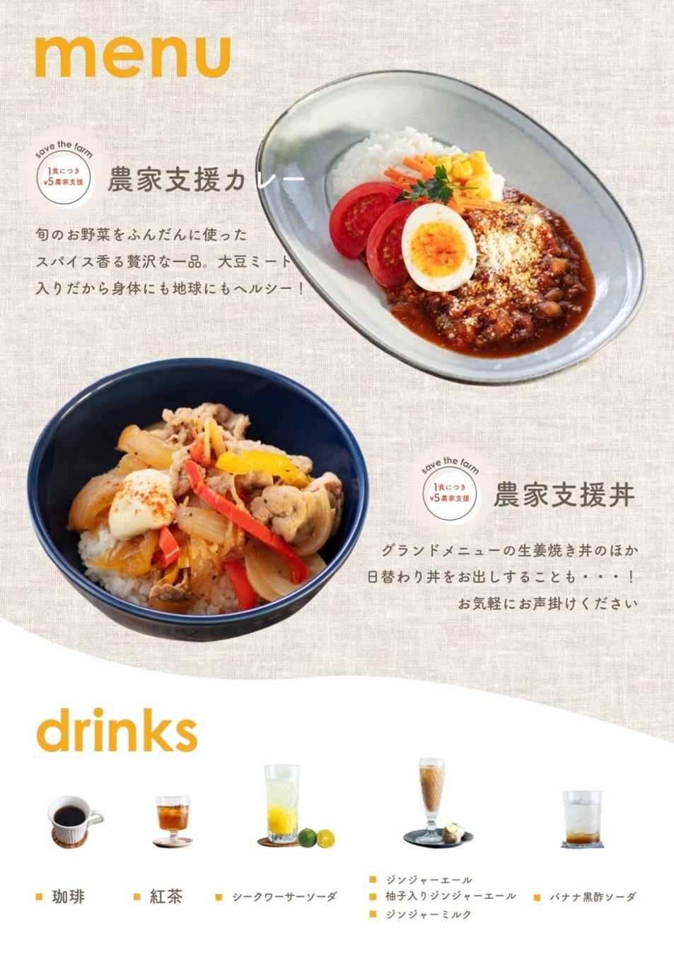 eat forでは、農家支援丼もしくはカレー1食をご購入いただくと、1食につき5円を提携農家の支援金とする《ご縁プロジェクト》を実施しています。