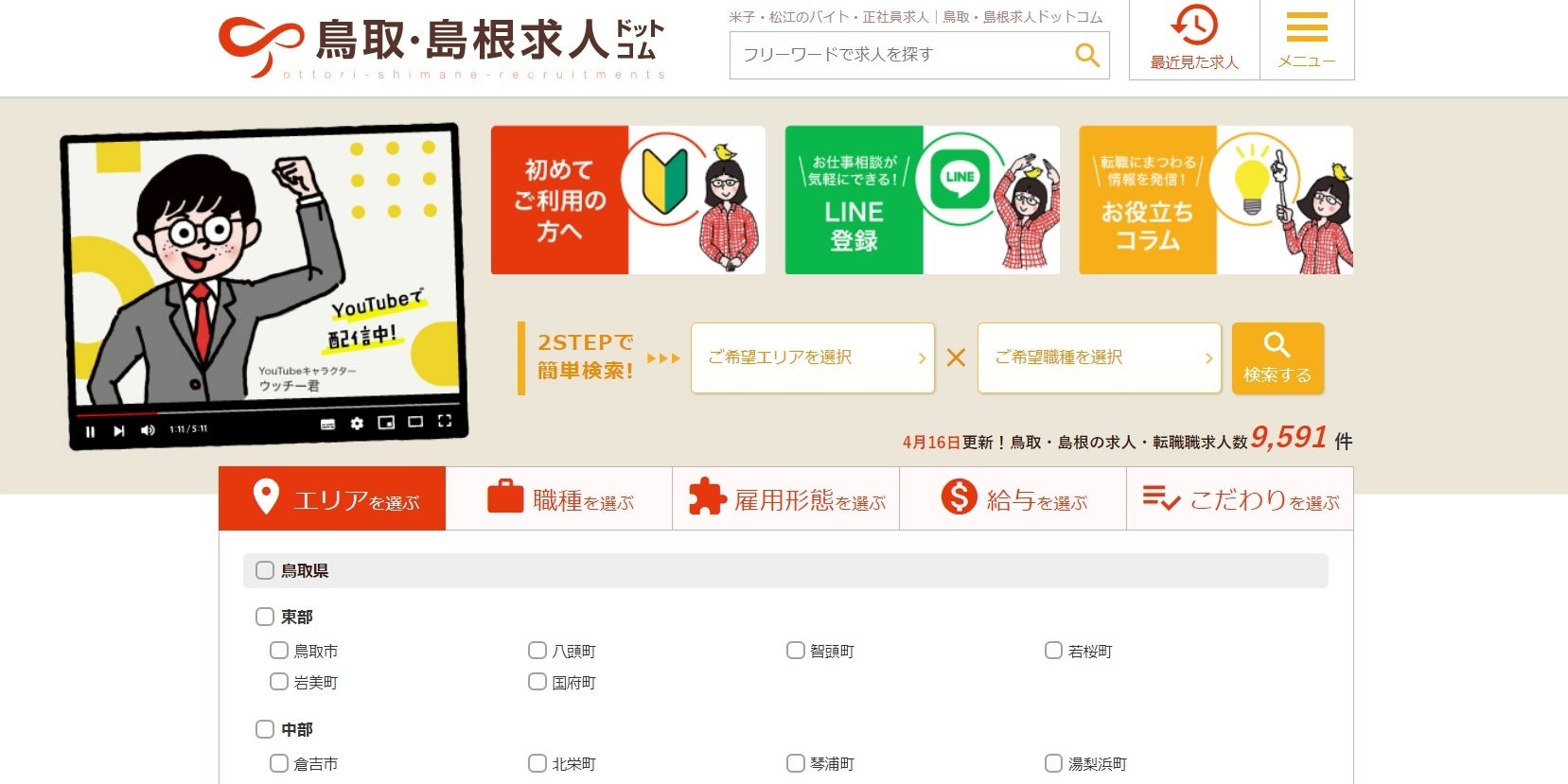 また、求人情報だけではなく、履歴書や職務経歴書の書き方といった転職ハウツー情報や、鳥取県や島根県の生活事情やこれらの地域に特化した業界の情報など、鳥取県や島根県の転職に関するお役立ち情報も随時更新しています。