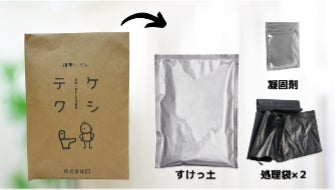 株式会社EI (本社: 静岡県浜松市 代表:伊堂 勉)は、家畜の糞尿を竹と茶などの天然物のみで自然消臭する技術を応用した携帯トイレ「ケシテク」を開発いたしました。従来の携帯トイレと同様に凝固剤と処理袋、さらに天然由来の消臭材「すけっ土」を付けたニオイの問題に対応した携帯トイレです。