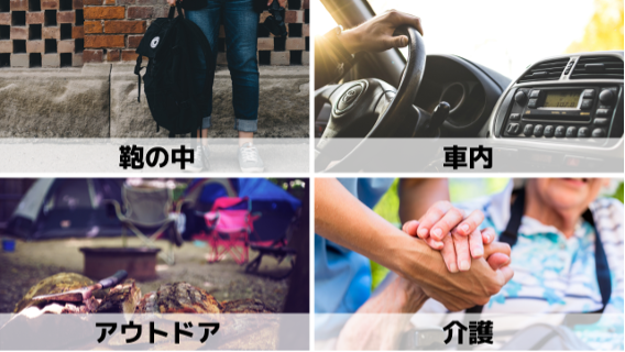 アウトドアや車内でも、どこでも使用できるデザイン