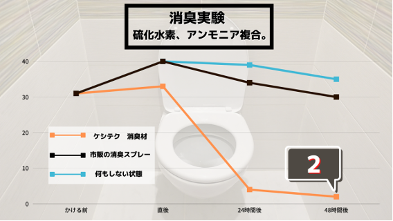 一般の消臭剤と比較すると、1/30程度にニオイが激減