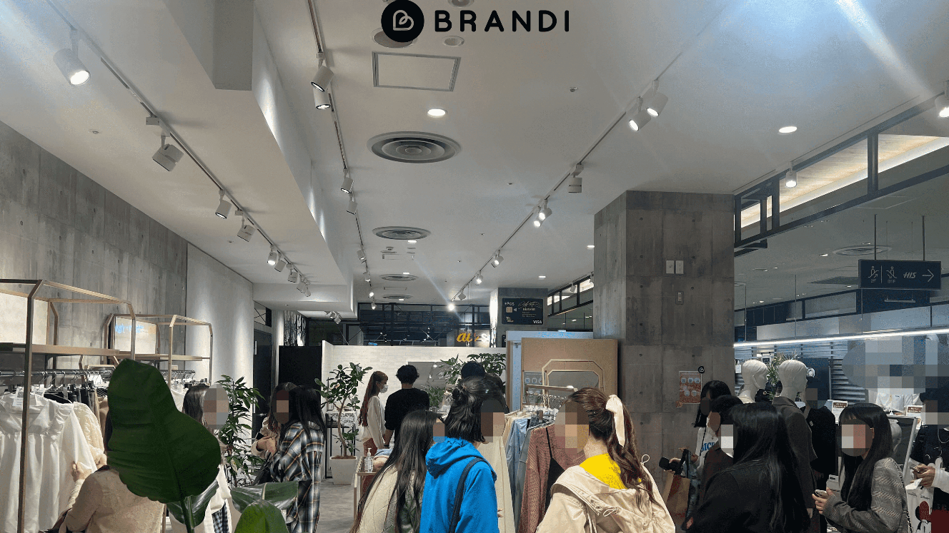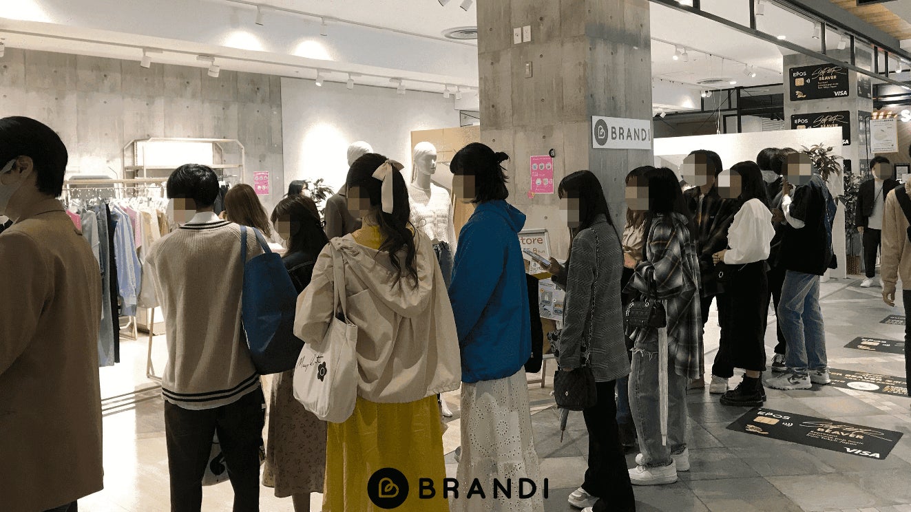 BRANDI初のPOP-UPストアは日本の大型連休ゴールデンウィーク期間中と重なり、20代女性を中心とする多くのお客様が来店、ストア外まで行列を作るほどの賑わいを見せた。